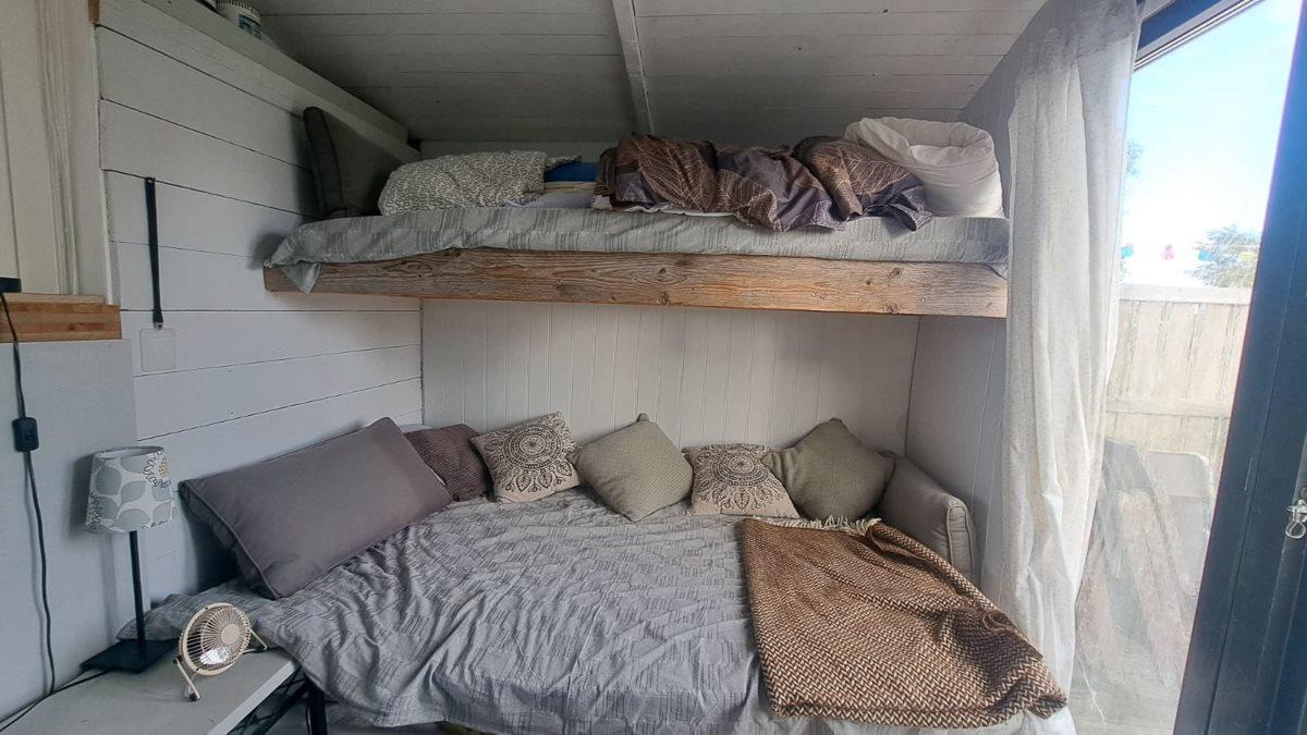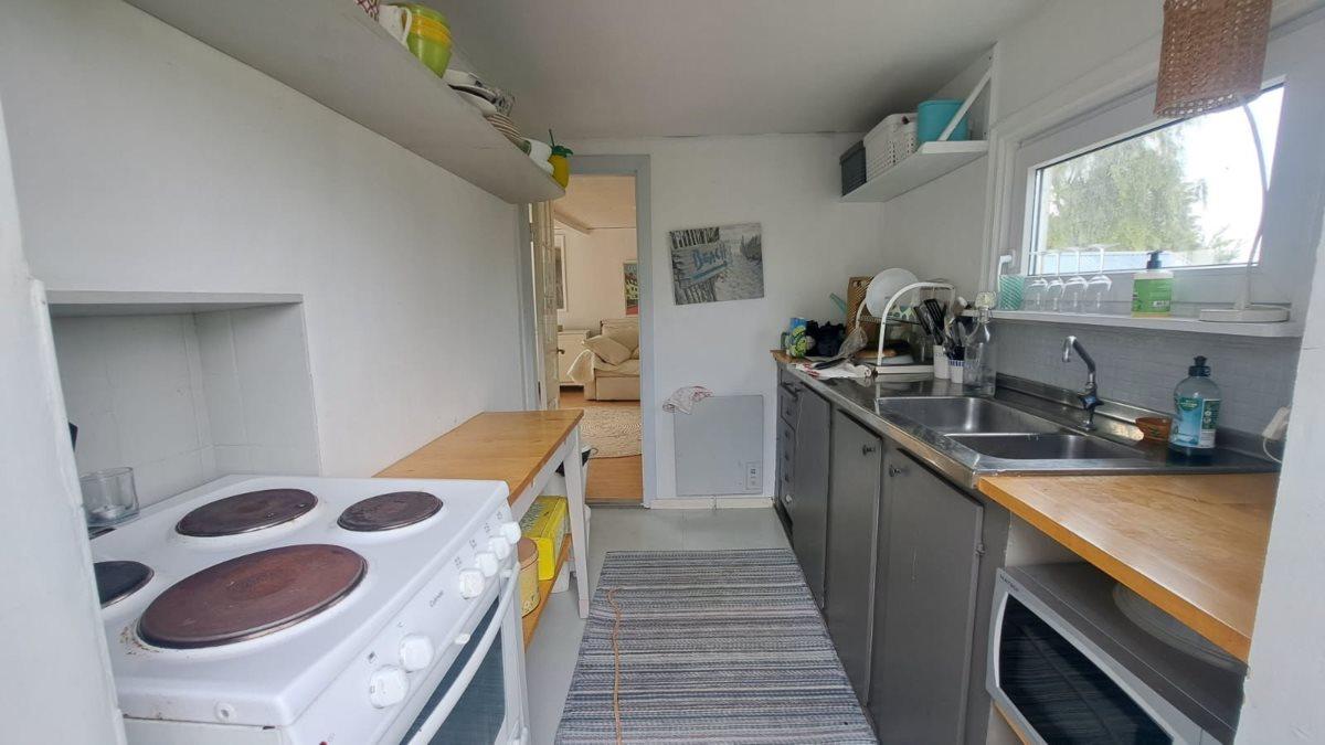Gäststugan rymmer tre sängplatser, kokvrå och förberett våtrum – perfekt för familj eller vänner som vill stanna över.